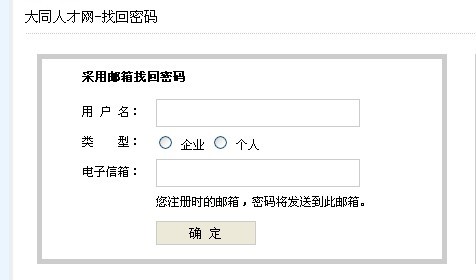 請(qǐng)輸入 用戶名 和當(dāng)初注冊(cè)的郵箱.特別注意,選擇好,企業(yè)和個(gè)人,企業(yè)就是招聘單位,個(gè)人就是求職者 填寫完畢 點(diǎn)確定 就可以了,如果這個(gè)方法不好用 可以用下一個(gè),.